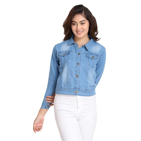 Solid Regular Denim Jacket For Women
